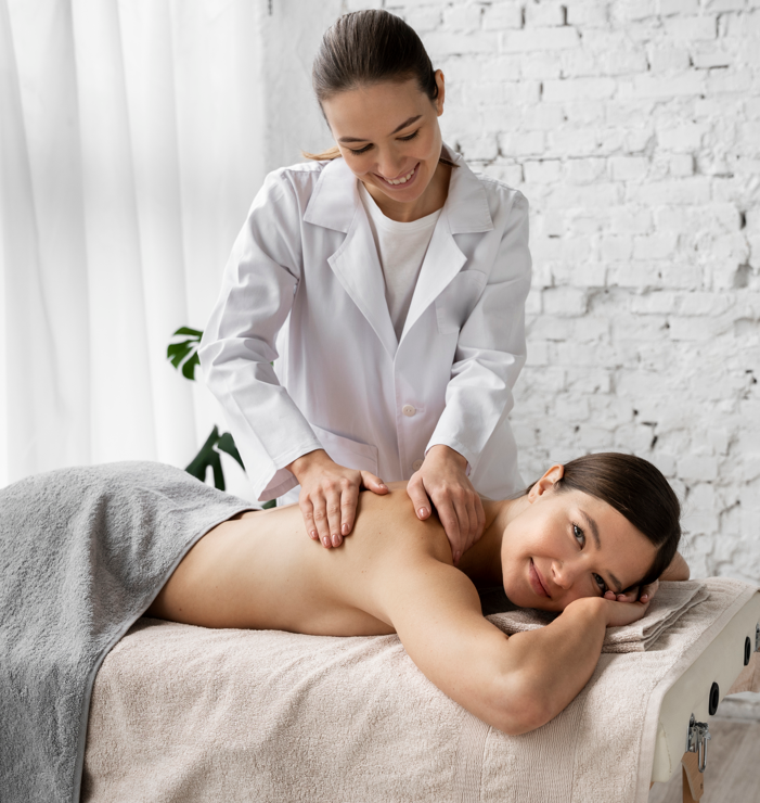 Expert female therapist massage focused on relaxation, balance, and full-body rejuvenation.